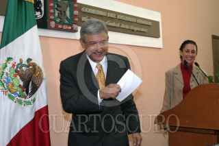 MEXICO, D.F. 20JULIO2005.- Andrés Manuel López Obrador, jefe de Gobierno capitalino, previo a la conferencia matutina que ofrece diariamente a los medios de comunicación. FOTO: Sandra Perdomo/CUARTOSCURO.COM
