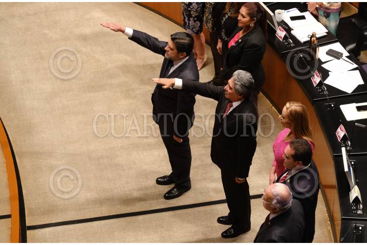 CIUDAD DE MÉXICO, 21AGOSTO2019.- Gabriel Yorio González, subsecretario de Hacienda y Crédito Público, y Mario Delgado, coordinador de Morena en la Cámara de Diputados, se saludaron durante la Sesión Permanente en el Senado de la República. FOTO: GRACIELA LÓPEZ /CUARTOSCURO.COM