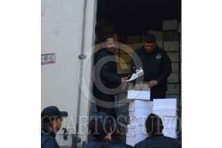 CIUDAD DE MÉXICO, 21AGOSTO2019.- Elementos de la policía de investigación decomisaron un camión con tenis presuntamente piratas, los cuales fueron trasladados a la agencia 50 del Ministerio Público, los hechos sucedieron en avenida circunvalación entre Manuel Doblado y Berriozábal en la colonia Morelos. FOTO: ARMANDO MONROY/CUARTOSCURO.COM