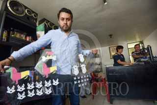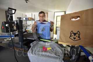 TOLUCA, ESTADO DE MÉXICO, 21AGOSTO2019.- Derik Vilchis Roa fundador de la empresa Kira, que se dedica a fabricar prendas a partir del PET, es un proyecto totalmente eco friendly y pet friendly, preocupados por el medio ambiente y buscando una forma de contribuir al cuidado del mismo inicio este proyecto, para la elaboración de estas playera se utilizan alrededor de 9 ó 10 botellas de PET, y este proyecto lleva una segunda causa que es la de apoyar con el 15 por ciento de sus ganancias que serán entregadas al refugio de animales Corazón Canino para apoyar a los perros y gatos en situación de calle. FOTO: CRISANTA ESPINOSA AGUILAR /CUARTOSCURO.COM