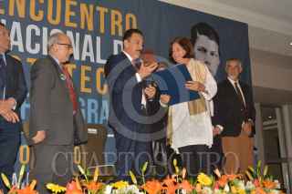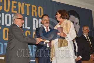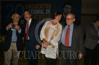 PACHUCA, HIDALGO, 22AGOSTO2019.- ¡Larga vida a la fotografía!, es el deseo de quienes participan del 20° Encuentro Nacional de Fototecas, en una semana de plácemes por el 180 aniversario de este maravilloso invento. La reunión, que inició este jueves 22 de agosto en Pachuca, “Ciudad de Luz y Plata”, fue la ocasión para honrar a dos fotógrafos que se han ido este año, caso de Jorge Acevedo y Eniac Martínez, y de reconocer a los que siguen en el camino. En esta vigésima edición, se distinguió la trayectoria de los creadores Bob Schalkwijk, Christa Cowrie y Maya Goded —esta última ausente por asuntos de trabajo— con la Medalla al Mérito Fotográfico, galardón que recibieron de manos del maestro Diego Prieto Hernández, director general del Instituto Nacional de Antropología e Historia (INAH), y del gobernador del Estado de Hidalgo, Omar Fayad Meneses. FOTO: INAH /CUARTOSCURO.COM