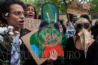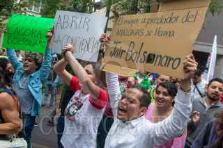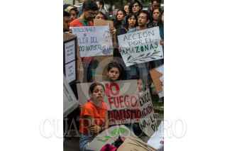 CIUDAD DE MÉXICO, 23AGOSTO2019.- Activistas y Ecologistas se manifestaron frente a la Embajada de Brasil en nuestro país, en contra del gobierno de dicho país sudamericano, debido al incendio que se registra en el Amazonas. FOTO: ISAAC ESQUIVEL /CUARTOSCURO.COM
