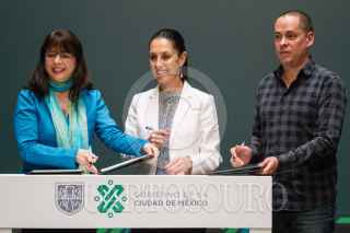 CIUDAD DE MÉXICO, 26AGOSTO2019.- Claudia Sheinbaum Pardo, jefa del Gobierno de la Ciudad, junto con María Elena Álvarez-Buylla Roces, directora del Conacyt, además de José Merino, firmaron esta mañana un Convenio de Colaboración en Materia de Datos y Calidad del Aire. El evento tuvo lugar en el patio central del Antiguo Palacio del Ayuntamiento. FOTO: VICTORIA VALTIERRA /CUARTOSCURO.COM