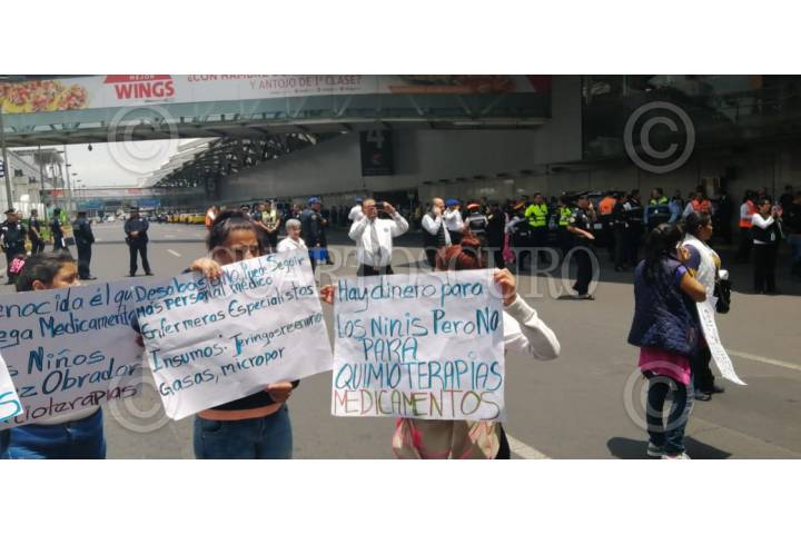 CIUDAD DE MÉXICO, 26AGOSTO2019.- Familiares de pacientes enfermos de cáncer del Hospital 20 de Noviembre bloquearon los accesos de la T1 del Aeropuerto Internacional de la Ciudad de México en demanda de medicamentos ya que señalan que no cuentan con ellos desde hace varias semanas. FOTO: ARMANDO MONROY /CUARTOSCURO.COM