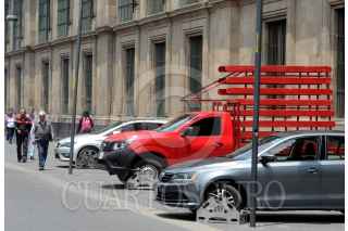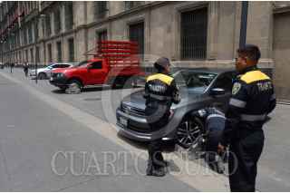 CIUDAD DE MÉXICO, 26AGOSTO2019.- Elementos de la policía de tránsito de la ciudad colocaron arañas a los autos de los funcionarios que visitaron Palacio Nacional, esto en la calle de Corregidora del Centro Histórico. FOTO: ARMANDO MONROY /CUARTOSCURO.COM