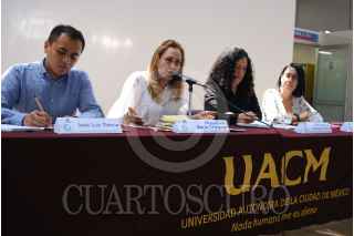 CIUDAD DE MÉXICO, 27AGOSTO2019.- José Luis García, representante administrativo Técnico y Manual; Hastadeth Borja Chagoya, consejera Universitaria Académica de la Universidad Autónoma de la Ciudad de México (UACM), Aida Patricia Arenas, encargada del despacho de la Secretaria General, y Jenifer Bustamante, consejera Universtaria Estudiantil, ofrecieron una conferencia de prensa para anunciar la destitución de Galdino Morán López, rector de la UACM y designación de Aída Patricia Arenas como encargada de despacho de la Secretaria General hasta que haya una nueva elección del titular. FOTO: GRACIELA LÓPEZ /CUARTOSCURO.COM