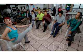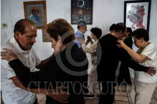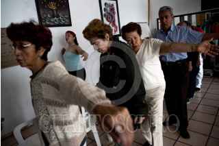 CIUDAD DE MÉXICO, 27AGOSTO2019.- Brandy Ruvalcaba una bailarina profesional, creo el método denominado “Tangoterapia” el cual ayuda a personas de la tercera edad con problemas de Parkinson a combatir esta enfermedad que no tiene cura y es progresiva. Mediante el baile las personas pueden tener mayores reflejos y fortaleza en sus músculos y tendones, lo cual los hace mas móviles en su día a día pues el Parkinson causa rigidez y disminución en los movimientos. Brandy implemento este sistema debido a que su mama padece la enfermedad y esto la a ayudado. Actualmente las clases se imparte los días martes en la Asociación Mexicana de Parkinson (AMPAC) en la colonia portales. FOTO: URIEL GUADARRAMA /CUARTOSCURO.COM