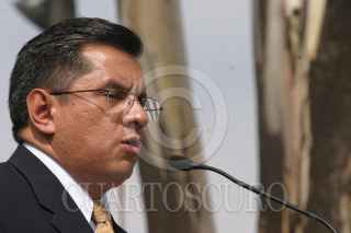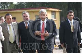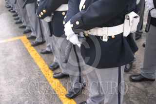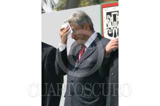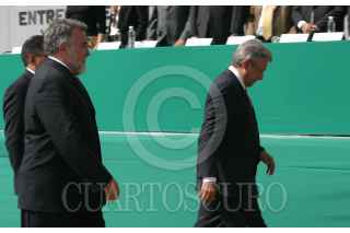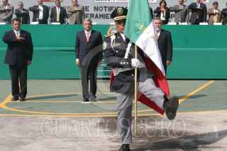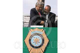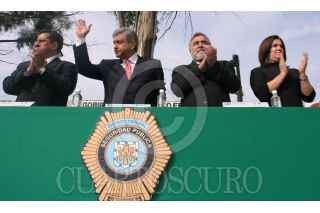 MEXICO, D.F. 21JULIO2005.- Jesús Zambrano, subsecretario de Gobierno, Joel Ortega, titular de la SSP-DF, Andrés Manuel López Obrador, jefe de Gobierno capitalino y Alejandro Encinas durante el abanderamiento de la escolta, durante la ceremonia de ascensos a policías. FOTO: Sandra Perdomo/CUARTOSCURO.COM