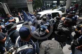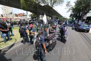 CIUDAD DE MÉXICO, 28AGOSTO2019.- Policías Federales que se han negado a integrarse a la Guardia Nacional, con el argumento de que perderían prestaciones laborales, como antigüedad, se manifestaron bloqueando el Periférico Sur, dirección hacia el norte, para exigir les entreguen sus liquidaciones de ley. FOTO: ARMANDO MONROY /CUARTOSCURO.COM