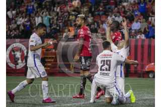 TIJUANA, BAJA CALIFORNIA, 28AGOSTO2019.- Érick Torres festeja el gol anotado durante el partido entre Xoloitzcuintles de Tijuana contra Cruz Azul, en partido realizado en el estadio Caliente, como parte de la Jornada 07 del Torneo de Apertura 2019 de la Liga MX. Marcador final: Xolos 3, Cementeros 2. FOTO: OMAR MARTÍNEZ /CUARTOSCURO.COM