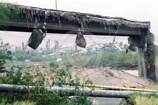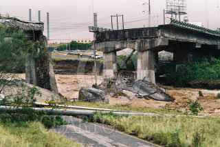 MONTERREY, NUEVO LEON21JULIO2005.- Pese a las advertencias de las autoridades varios comerciantes del mercado popular ¨La Pulga, dejaron algunas de sus pertencias que anoche el caudal del Río Santa Catarina se encargo de llevarse, al fondo un puente peatonal averiado también. FOTO: Pedro Valtierra/CUARTOSCURO.COM