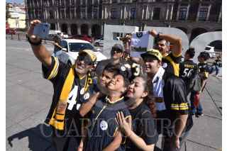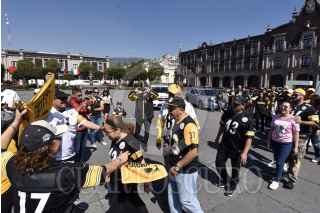 TOLUCA, ESTADO DE MÉXICO, 01SEPTIEMBRE2019.- Aficionados de Los Steelers en Toluca se tomaron la Foto oficial Steerlers Fans 2019 previo al inicio de temporada en la Plaza de los Mártires. FOTO: CRISANTA ESPINOSA AGUILAR /CUARTOSCURO.COM
