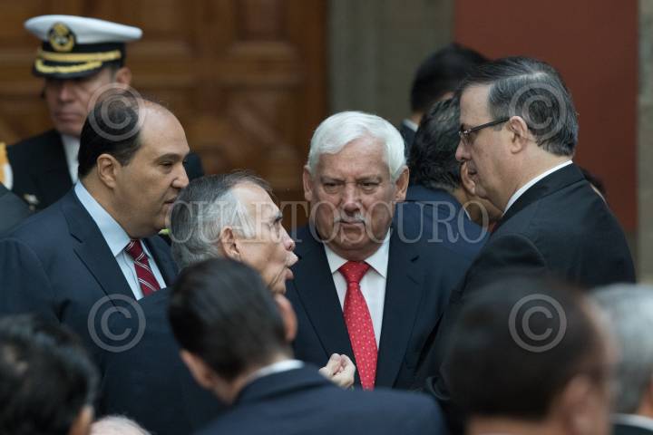 CIUDAD DE MÉXICO, 01SEPTIEMBRE2019.- Germán Larrea, presidente de Grupo México, y al fondo Carlos Slim Helú, fundador de grupo Carso, al finalizar el Tercer Informe de Gobierno al Pueblo de México del Jefe del Ejecutivo, Andrés Manuel López Obrador, en Palacio Nacional. FOTO: MOISÉS PABLO /CUARTOSCURO.COM