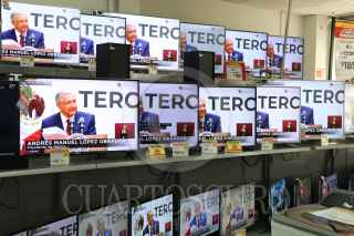 VILLAHERMOSA, TABASCO, 01SEPTIEMBRE2019.- En los televisores de una tienda departamental se observa el primer informe de gobierno del Presidente de México, Andrés Manuel López Obrador. FOTO: EDGAR JASSO /CUARTOSCURO.COM