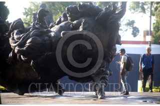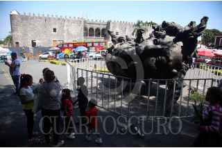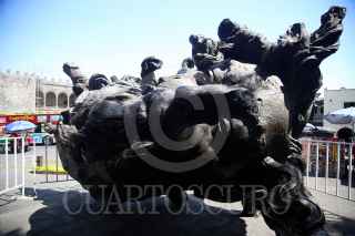 CUERNAVACA, MORELOS, 01SEPTIEMBRE2019.- Gran expectación causa la obra del escultor Javier Marín. En el zócalo de la ciudad fueron colocadas tres cabezas monumentales del artista visual nacido en Uruapan, Michoacán en 1962. El próximo sábado se inaugura su exposición Claroscuros, en el Museo Morelense de Arte Contemporáneo Juan Soriano. FOTO: MARGARITO PÉREZ RETANA /CUARTOSCURO.COM