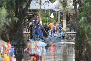 CIUDAD DE MÉXICO, 01SEPTIEMBRE2019.- Policías y rescatistas buscan el cuerpo de un joven de 20 años que cayó a los canales del embarcadero Nuevo Nativitas, en Xochimilco. FOTO: CRISTIAN HERNÁNDEZ /CUARTOSCURO.COM