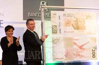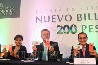 CIUDAD DE MÉXICO, 02SEPTIEMBRE2019.- Los integrantes de la Junta de Gobierno del Banco de México encabezados por el Gobernador Alejandro Díaz de León presentaron el nuevo billete de 200 pesos que ahora tendrá en el frente a Hidalgo y Morelos. FOTO: MOISÉS PABLO /CUARTOSCURO.COM