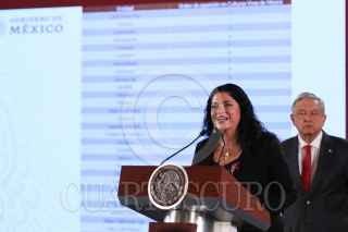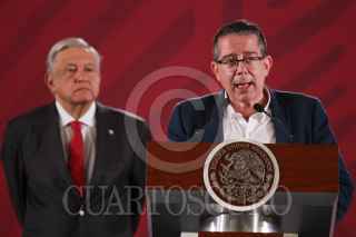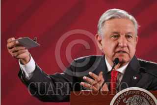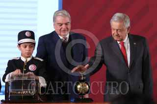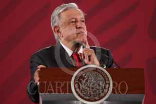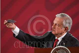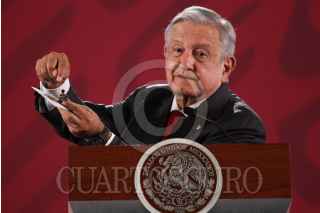 CIUDAD DE MÉXICO, 03SEPTIEMBRE2019.- Andrés Manuel López Obrador, presidente de México, durante la conferencia de prensa donde realizó el sorteo para la presentación de bailes regionales de las 32 entidades federativas como parte de los festejos del próximo 15 y 16 de septiembre. Asimismo, el presidente de la República enseñó a los comunicadores la supuesta cámara encontrada, en días anteriores, en una de las oficinas de Palacio Nacional. FOTO: GALO CAÑAS /CUARTOSCURO.COM
