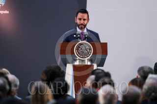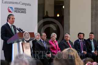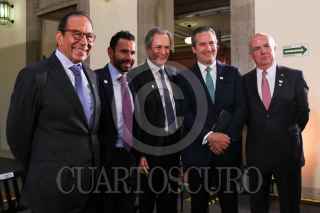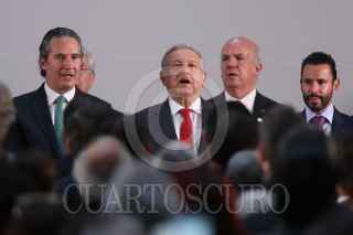 CIUDAD DE MÉXICO, 03SEPTIEMBRE2019.- José Carlos Azcárraga, nuevo presidente del Consejo de la Comunicación, Andrés Manuel López Obrado, presidente de México, y Federico Lopez Otegui, presidente saliente del Consejo de la Comunicación, durante la ceremonia de cambio de titualr de dicha dependencia. FOTO: GALO CAÑAS /CUARTOSCURO.COM