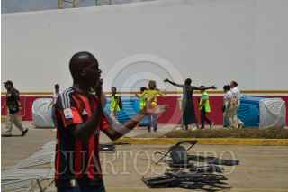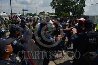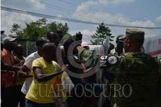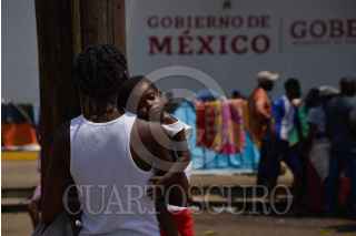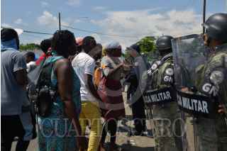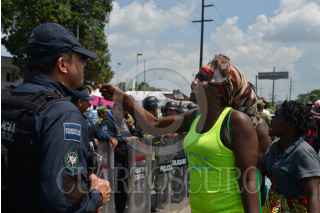 TAPACHULA, CHIAPAS, 03SEPTIEMBRE2019.- El Instituto Nacional de Migración instaló unas carpas para atender a la población africana que se encuentra en territorio mexicano, los procesos que han cumplido estos migrantes en diferentes instancias del gobierno han sido inútiles ya que no resuelven su situación migratoria y ellos continúan varados en este municipio, al enterarse de que la atención en estas nuevas mesas sería la misma que han recibido los últimos meses, los africanos decidieron no acudir a las mesas de atención y expresaron antes los policías y agentes migratorios su malestar y desesperación al no saber que va a pasar, ni ser atendidos en su idioma. FOTO: ISABEL MATEOS /CUARTOSCURO.COM