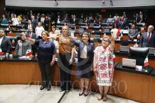 CIUDAD DE MÉXICO, 03SEPTIEMBRE2019.- Las senadoras Katya Elizabeth Ávila Velázquez, Verónica Noemí Camino Farjat, María Guadalupe Saldaña Cisneros y Martha Guerrero Sánchez, tomaron protesta como secretarías de la mesa directiva del Senado de la República. FOTO: CUARTOSCURO.COM