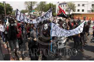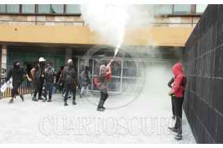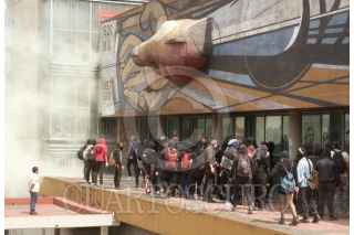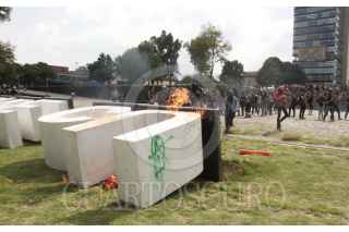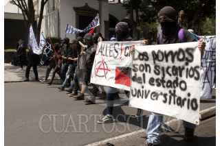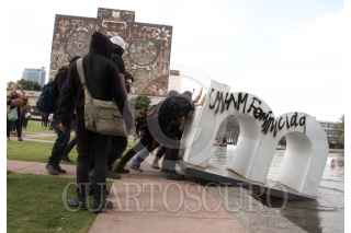 CIUDAD DE MÉXICO, 03SEPTIEMBRE2019.- La tarde de este martes se realizó una marcha del Parque la Bombilla a Ciudad Universitaria, esto con motivo del ataque porril a la Rectoría del pasado 2018. Decenas de encapuchados protestaron realizando pintas, disturbios en las islas y en la torre de la institución. FOTO: ROGELIO MORALES /CUARTOSCURO.COM