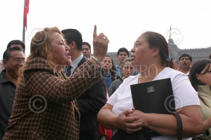 MEXICO, D.F. 27JULIO2005.- Miembros de a asociación Jovenes Universitarios, y simpatizantes del jefe de Gobierno capitalino, discutieron durante la manifestación de los primeros, realizada en la explanada del zócalo. FOTO: Sandra Perdomo/CUARTOSCURO.COM