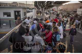 TIJUANA, BAJA CALIFORNIA, 04SEPTIEMBRE2019.- Decenas de migrantes acuden a temprana hora al puerto fronterizo de El Chaparral con la intensión de obtener turno para ser entrevistados por autoridades de Estados Unidos, en busca de obtener asilo humanitario. La imagen muestra a Leidy y su hija de 8 años, migrantes de nacionalidad mexicana llegadas del estado de Guerrero y que cada mañana acuden a la garita para conocer la situación actual del acceso. FOTO: OMAR MARTÍNEZ /CUARTOSCURO.COM