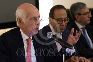 CIUDAD DE MÉXICO, 04SEPTIEMBRE2019.- Luis Niño de Rivera, presidente de la Asociación de Bancos de México, y Carlos Salazar Lomelín, presidente del Consejo Coordinador Empresarial (CCE), ofrecieron una conferencia de prensa para hablar sobre lo que esperan sobre el próximo paquete económico, también mostraron su negativa sobre la iniciativa que busca castigar el fraude fiscal como crimen organizado. FOTO: MOISÉS PABLO /CUARTOSCURO.COM