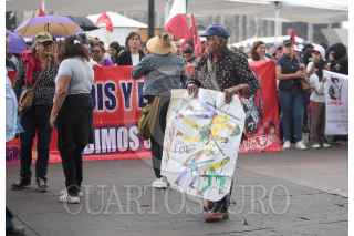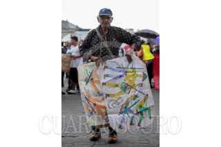 TOLUCA, ESTADO DE MÉXICO, 04SEPTIEMBRE2019.- Durante una manifestación reapareció el señor Porfirio Lamarque mejor conocido como “El señor de las bestias” un indigente que se caracterizaba por estar siempre acompañado de varios perros a los que cuidaba y alimentaba, y por sus trazos de chinos en varios lugares en la ciudad, y el cual fue internado en un hospital psiquiátrico en Ixtapaluca en el 2013, en esta ocasión apareció con sus dibujos en dos cartulinas en una manifestación de estudiantes. FOTO: CRISANTA ESPINOSA AGUILAR /CUARTOSCURO.COM