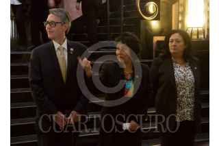 CIUDAD DE MÉXICO, 04SEPTIEMBRE2019.- Alfonso Suárez del Real, secretario de cultura de la ciudad; Lucina Jiménez, Directora General del Instituto Nacional de Bellas Artes y Literatura y Florencia Serrania, Directora del Sistema de Transporte Colectivo Metro, encabezaron la inauguración de la exposición, Metro 50 años, en el Palacio de Bellas artes. FOTO: ROGELIO MORALES /CUARTOSCURO.COM