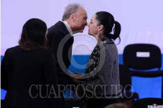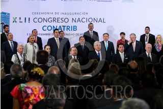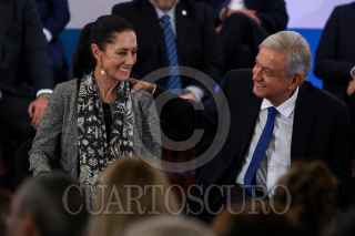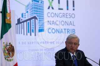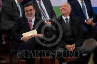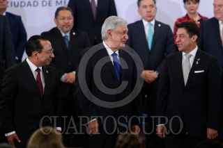 CIUDAD DE MÉXICO, 05SEPTIEMBRE2019.- Rafael Guerra, presidente del Poder Judicial de la Ciudad de México; Andrés Manuel López Obrador, presidente de México, y Sergio Medina Peñaloza, presidente presidente del Tribunal Superior de Justicia del Estado de México, durante la inauguración del XLII Congreso Nacional de Tribunales Superiores (CONATRIB). FOTO: GALO CAÑAS /CUARTOSCURO.COM