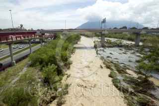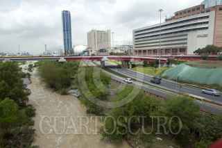 MONTERREY, NUEVO LEÓN, 05SEPTIEMBRE2019.- La afluencia del río Santa Catarina subió su nivel debido al paso de la tormenta torpical "Fernand" que arribó al estado de Nuevo León. FOTO: GABRIELA PÉREZ MONTIEL /CUARTOSCURO.COM