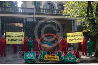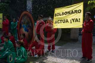 CIUDAD DE MÉXICO, 05SEPTIEMBRE2019.- La organización ambientalista Greenpeace se manifestó afuera de la Embajada de Brasil para exigirle al gobierno de aquel país, el cual está encabezado por Jair Bolsonaro, tomen cartas para controlar los incendios que han devastado el Amazonas. FOTO: MOISÉS PABLO /CUARTOSCURO.COM