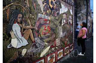 TEPOZTLÁN, MORELOS, 08SEPTIEMBRE2019.- Arco de semillas colocado en la entrada del templo de este pueblo, que celebra a Nuestra Señora de Natividad este día. FOTO: MARGARITO PÉREZ RETANA /CUARTOSCURO.COM