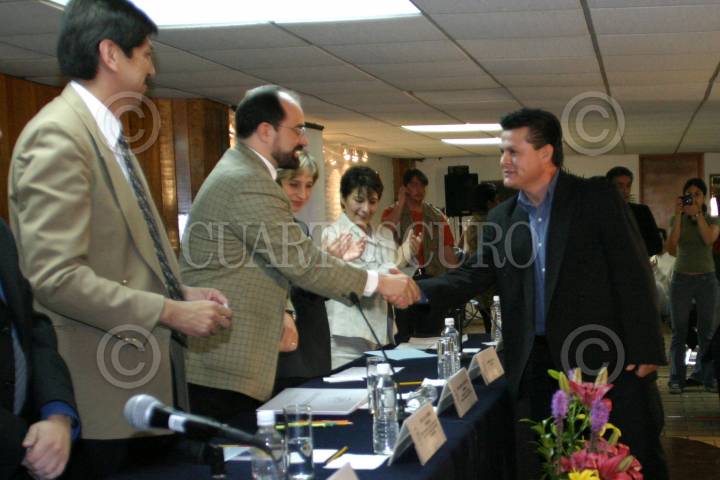 MEXICO, D.F. 08AGOSTO2005.- Emilio Alvarez Icaza, presidente de la Comisión de Derechos Humanos del D.F. entregó el premio Rostros de la Discrimicación a los periodistas galardonados. FOTO: Nelly Salas/CUARTOSCURO.COM