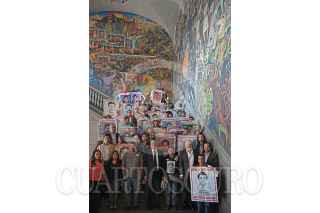 CIUDAD DE MÉXICO, 11SEPTIEMBRE2019.- Andrés Manuel López Obrador, Presidente de México, y Alejandro Encinas Rodríguez, subsecretario de Derechos Humanos de la Segob, se reunieron con los padres de los 43 estudiantes desaparecidos de la Escuela Normal Rural "Raúl Isidro Burgos", en Palacio Nacional. FOTO: CUARTOSCURO.COM