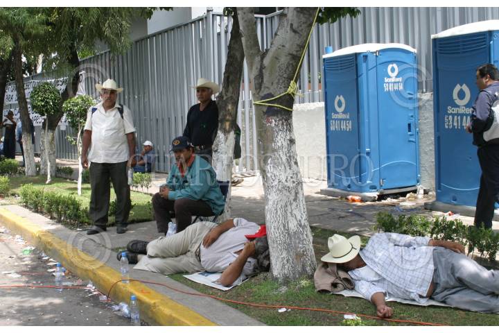 MEXICO, D.F. 09AGOSTO2005.- Cañeros de varias partes de la República, ven televisión mientras continúa el plantón a las puertasde SAGARPA, en espera de una respuesta a sus demandas. FOTO: Sandra Perdomo /CUARTOSCURO.COM