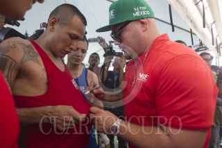 MONTERREY, NUEVO LEÓN, 11SEPTIEMBRE2019.- El Campeón Mundial de peso completo Andy Ruíz, visitó a internos del Reclusorio del Topo Chico en la ciudad de Monterrey, en donde realizan un torneo con boxeadores que se encuentran privados de su libertad en el penal. FOTO: GABRIELA PÉREZ MONTIEL /CUARTOSCURO.COM