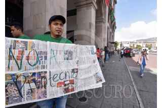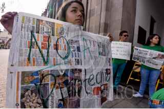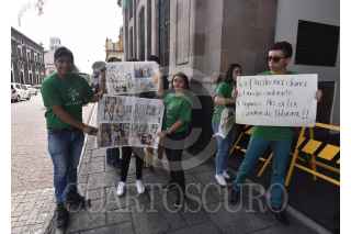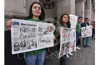 TOLUCA, ESTADO DE MÉXICO, 13SEPTIEMBRE2019.- Integrantes de la organización civil Eco Urban se manifestaron frente a la presidencia municipal de Toluca para pedir se evite el uso de pirotecnia en la celebración de las Fiestas Patrias, ya que esto puede generar mala calidad del aire en los siguientes días; en el Estado de México solo un municipio prohibió la venta de pirotecnia. FOTO: CRISANTA ESPINOSA AGUILAR /CUARTOSCURO.COM