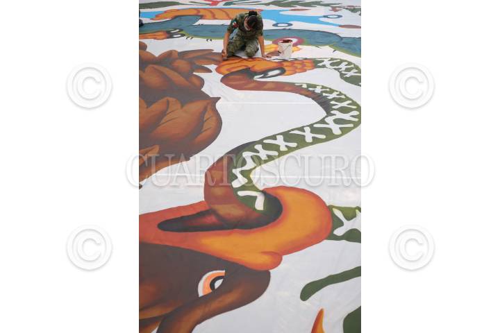 CIUDAD DE MÉXICO, 13SEPTIEMBRE2019.- Elementos de la Secretaria de la Defensa Nacional (SEDENA), elaboran banderas monumentales, de edifico y escritorio a través de la Dirección General de la Fábrica de Vestuario y Equipo (FAVE). Las telas son de nylon y hechas en la misma fábrica. El tiempo que se estima para su elaboración es de aproximadamente un mes. El proceso de elaboración se divide en varias etapas, en las que se maneja el Tejido, en dónde se adhieren los colorantes; el Teñido, en el que se adicionan los colores a 110º, con productos químicos como el teflón que son resistentes a la humedad; el Enjuague y Secado, y el Acabado, en el que realizan la revisión de metro por metro. En la etapa del Trazo y Corte, se requieren diferentes metros de tela y se necesita una tabla de dimensiones para conocer cuántos lienzos se cortan para cada color. Después se confeccionan y posteriormente pintan a mano el Escudo Nacional por ambos lados en el que se ocupan 11 colores básicos y 5 para matizar; los colorantes textiles son repelentes y a base de agua. Las banderas de edificio miden de 50 metros hacia arriba y las monumentales miden hasta 120 metros de largo en el asta, el peso de una bandera de 50 metros pesa alrededor de 230 kilogramos y su costo es aproximadamente de 300 mil pesos. Cuando una bandera monumental es rasgada por el viento, elementos del Ejército Mexicano la destruyen mediante un proceso de incineración, rindiendo honores en una ceremonia y la cambian por una nueva. La bandera monumental más grande del país se encuentra en la explanada del puente Internacional I Solidaridad de Piedras Negras, Coahuila; mide 60 metros por 34 y pesa 300 kilogramos; el asta tiene una altura de 120 metros, la cual está fabricada con acero de alta resistencia y pesa 160 toneladas que soportan vientos de hasta 190 kilómetros por hora. FOTO: GRACIELA LÓPEZ /CUARTOSCURO.COM