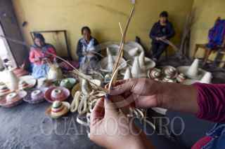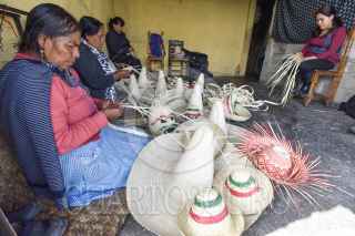 TOLUCA, ESTADO DE MÉXICO, 13SEPTIBRE2019.- Los tradicionales sombreros de palma que se usan en la celebración de las Fiestas Patrias son elaborados por mujeres y hombres de la zona norte de Toluca, San Cristóbal Huichochitlán es una de las delegaciones que se caracteriza por el trabajo de la palmas, el trabajo se realiza durante todo el año aunque unos meses antes se intensifica el trabajo y la venta de cinta para poder armar los sombreros, la palma tiene que estar seca para poderla trabajar y no echar a perder material, la mayoría de mujeres dedica sus tiempos libres para elaborar la cinta y venderla a bajos costos a los talleres que elaboran los sombreros, en su mayoría son personas mayores las que hacen esto ya que a los jóvenes no les interesa aprender a tejer palma. FOTO: CRISANTA ESPINOSA AGUILAR /CUARTOSCURO.COM