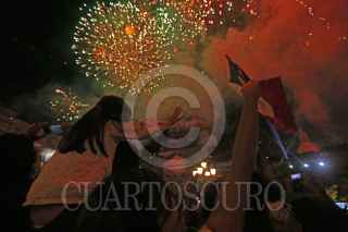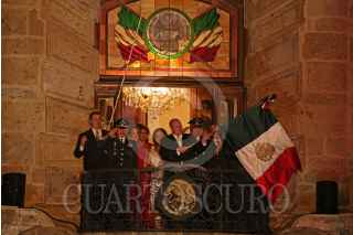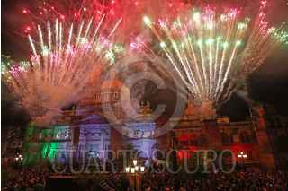 GUADALAJARA, JALISCO, 15SEPTIEMBRE2019.- Enrique Alfaro Ramírez, Gobernador del estado, dio el tradicional grito de independencia desde el balcón de Palacio de Gobierno ante cientos de personas que asistieron a la Plaza de Armas, en donde después se llevó a cabo un espectáculo de pirotecnia en torno a la plaza y la Catedral Metropolitana. FOTO: FERNANDO CARRANZA GARCIA / CUARTOSCURO.COM