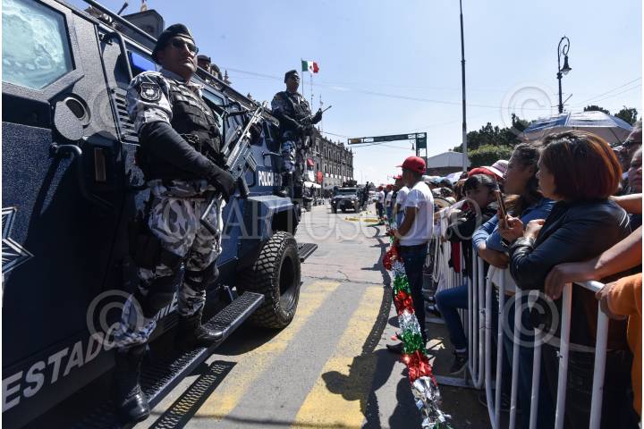 TIJUANA, BAJA CALIFORNIA, 16SEPTIEMBRE2019.- Desfile conmemorativo del 209 aniversario de la Independencia de México realizado en la ciudad fronteriza, donde participaron escuelas, contingentes del Ejército Mexicano, Policía Municipal y elementos de distintos cuerpos de rescate. FOTO: OMAR MARTÍNEZ /CUARTOSCURO.COM