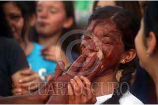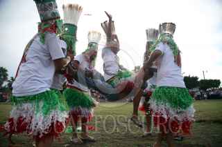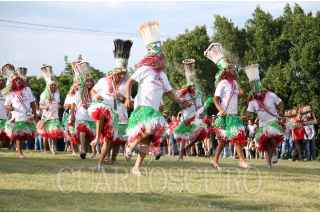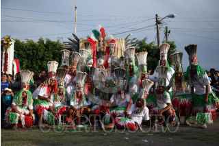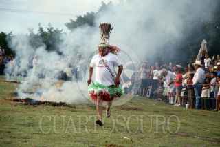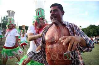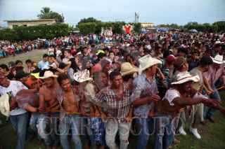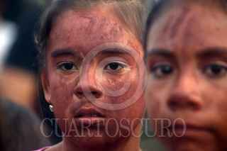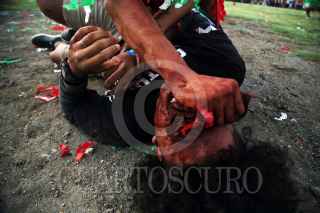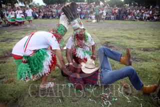 AXOCHIAPAN, MORELOS, 16SEPTIEMBRE2019.- Habitantes de la comunidad de Quebrantadero participan en la conmemoración por el 209 aniversario del Grito de Independencia. La representación se conoce como “Los Apaches” donde una parte de los pobladores se visten como indios y tienen que derribar de los caballos que montan los españoles, para después untar una mezcla de agua con tierra roja. FOTO: MARGARITO PÉREZ RETANA /CUARTOSCURO.COM