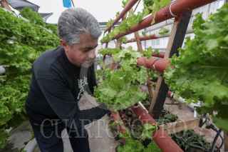TOLUCA, ESTADO DE MÉXICO, 17SEPTIEMBRE2019.- Por más de 30 años Abraham López se ha dedicado a realizar y enseñar eco-técnicas, busca que la población se interese en la creación de huertos urbanos; la hidroponía es un método de cultivo en el que no se utiliza tierra si no agua, las semillas son sembradas en charolas, al germinar son transplantas a un sistema de circulación de agua casero, construido con tubos de PVC en donde crecerán las plantas, de esta forma se evita el uso de químicos, la gente aprovecha los espacios urbanos y tiene una alimentación saludable. FOTO: CRISANTA ESPINOSA AGUILAR /CUARTOSCURO.COM