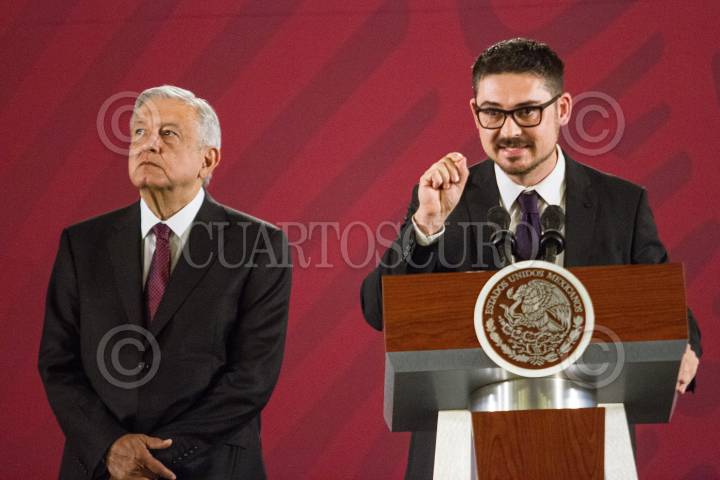 CIUDAD DE MÉXICO, 18SEPTIEMBRE2019.- Andrés Manuel López Obrador, Presidente de México, encabezo la conferencia mañanera en Palacio Nacional, lo acompañaron Arturo Herrera, secretario de Energía; David Cervantes, encargado del Plan de Reconstrucción Nacional, y Román Meter Falcón, titular de la SEDATU. FOTO: VICTORIA VALTIERRA /CUARTOSCURO.COM