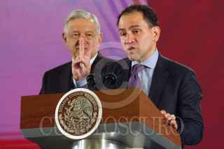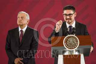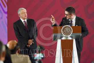 CIUDAD DE MÉXICO, 18SEPTIEMBRE2019.- Andrés Manuel López Obrador, Presidente de México, encabezo la conferencia mañanera en Palacio Nacional, lo acompañaron Arturo Herrera, secretario de Energía; David Cervantes, encargado del Plan de Reconstrucción Nacional, y Román Meter Falcón, titular de la SEDATU. FOTO: VICTORIA VALTIERRA /CUARTOSCURO.COM