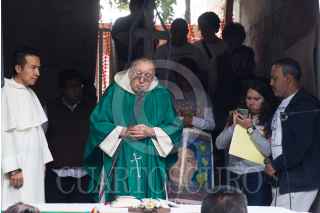 CIUDAD DE MÉXICO, 19SEPTIEMBRE2019.- Damnificados del Multifamiliar de Tlalpan celebraron una misa, oficiada por el Padre Miguel Concha Malo, para recordar a las víctimas que murieron durante el sismo de hace dos años que provocó que parte de este inmueble se viniera abajo. FOTO: MOISÉS PABLO /CUARTOSCURO.COM