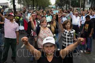 CIUDAD DE MÉXICO, 19SEPTIEMBRE2019.- Ciudadanos y damnificados del Multifamiliar Tlalpan alzaron el puño en punto de la 1:14 para conmemorar la memoria de la víctimas que perecieron hace dos años cuando decenas de edificios se vinieron abajo tras un temblor, en el marco de su protesta cerraron por un minuto avenida Tlalpan. FOTO: MOISÉS PABLO /CUARTOSCURO.COM
